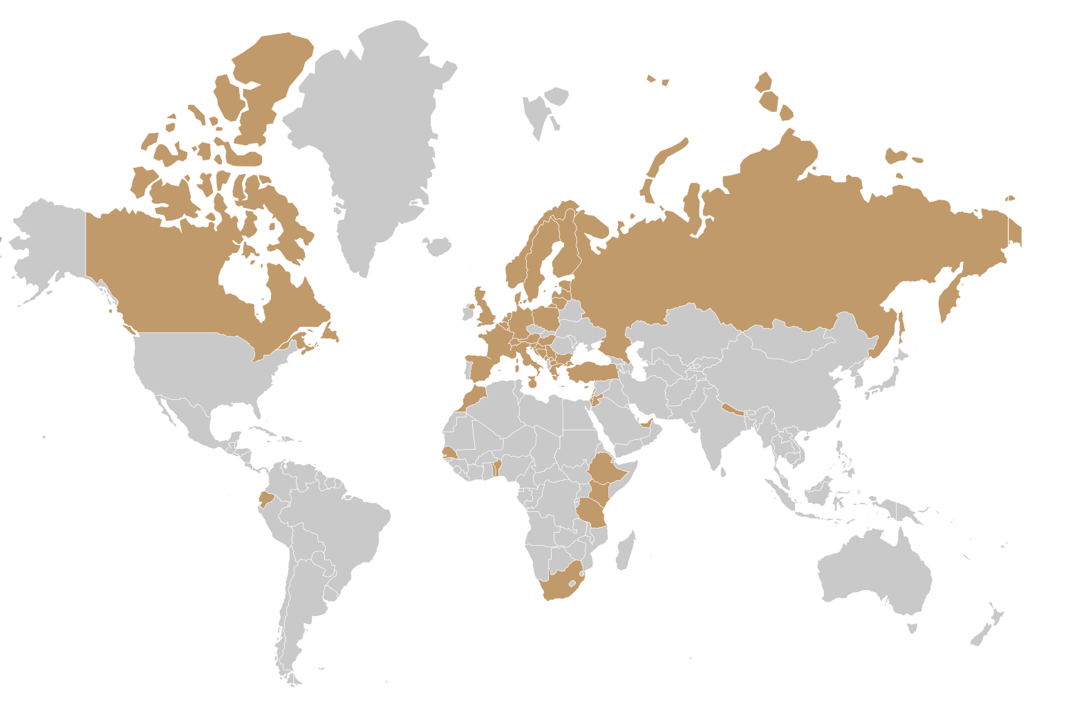 Benin, Etelä-Afrikka, Etiopia, Kenia, Marokko, Senegal, Tansania, Togo
